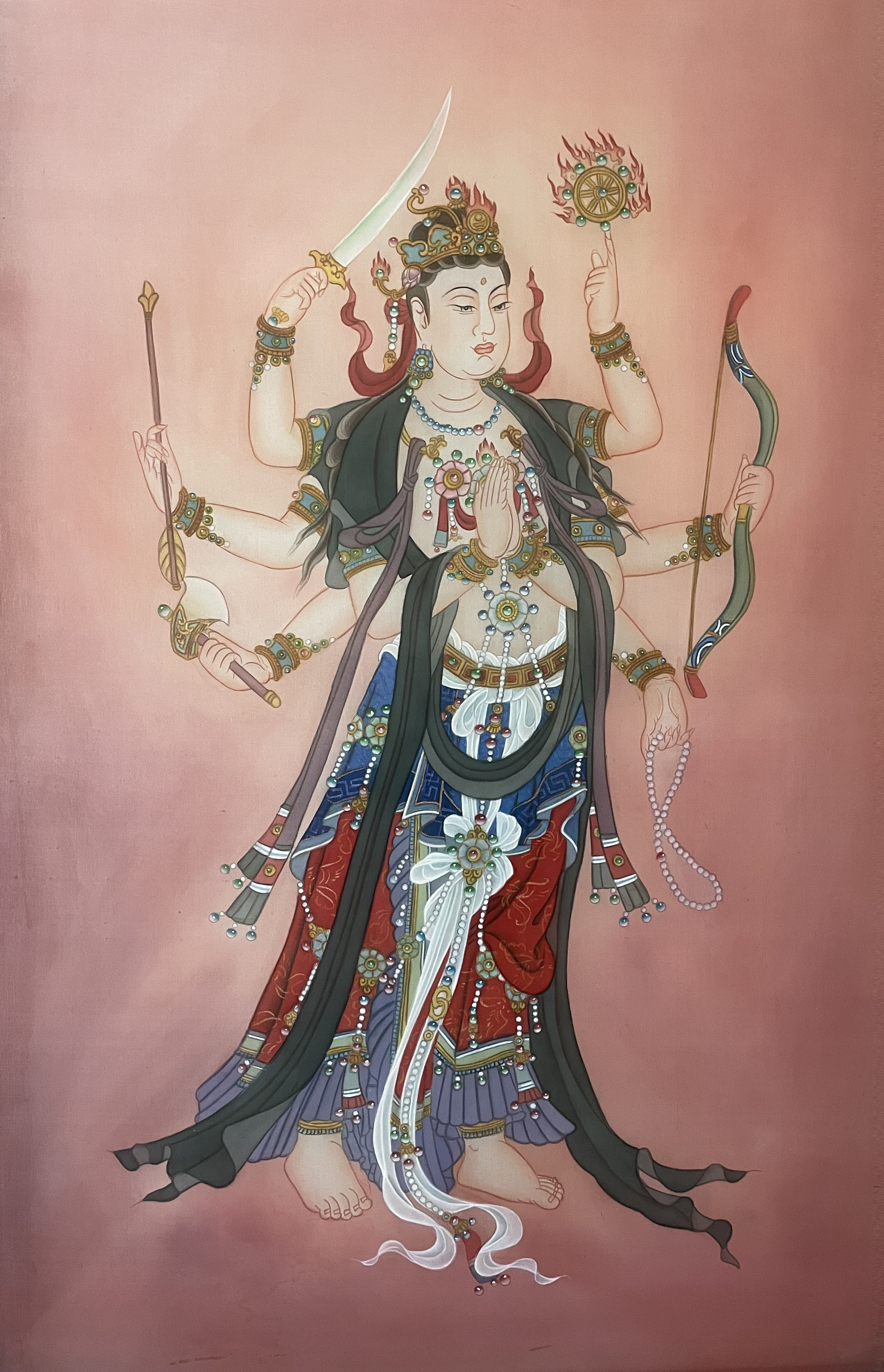 與佛敘畫 展覽場地:市政大樓文心樓1、5、7樓 展覽期間:2022/8/31 ~ 2022/10/5 溫麗慈因緣際會學習佛像畫,在創作中加入自己的情感與思維,學習了禪悟。佛像畫講求線條細膩精巧、色彩淡雅柔和、追求自然生動,先以白描筆法勾勒出形貌,膠彩設色層層敷染,表現出典雅高貴的色澤,期望觀者能從佛畫藝術中體會到清淨與莊嚴的內涵。