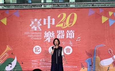 「2025台 中樂器節」記者會今(25)日下午於市府陽明大樓舉行,為活動邁入第20週年揭開序幕。現場特別邀請在地樂團-后里愛樂薩克斯風重奏團,樂手們帶來四種不同聲部薩克斯風的精彩演出,除了展現薩克斯風演奏多層次的音色特色樣貌,更配合曲目以特色服飾裝扮共同歡慶台 中樂器節邁入20周年,將現場打造出「一起玩音樂,歡樂享盛會」的節慶氛圍。