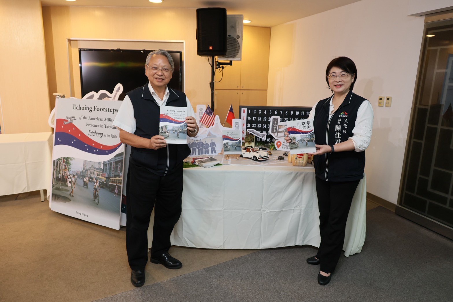 首度完整記錄1960年代美軍駐紮台中生活風貌與人情故事的國際專書《華美的跫音》英文版,今(14)日正式發表,由台中市文化局長陳佳君及前副市長令狐榮達先生共同啟動啟航儀式,宣告本書以全新英文譯本姿態登上國際舞台。這本專書透過英文譯本,將台中在美援時期所形塑的獨特文化樣貌推向國際,見證城市在歷史交會下的多元風華。