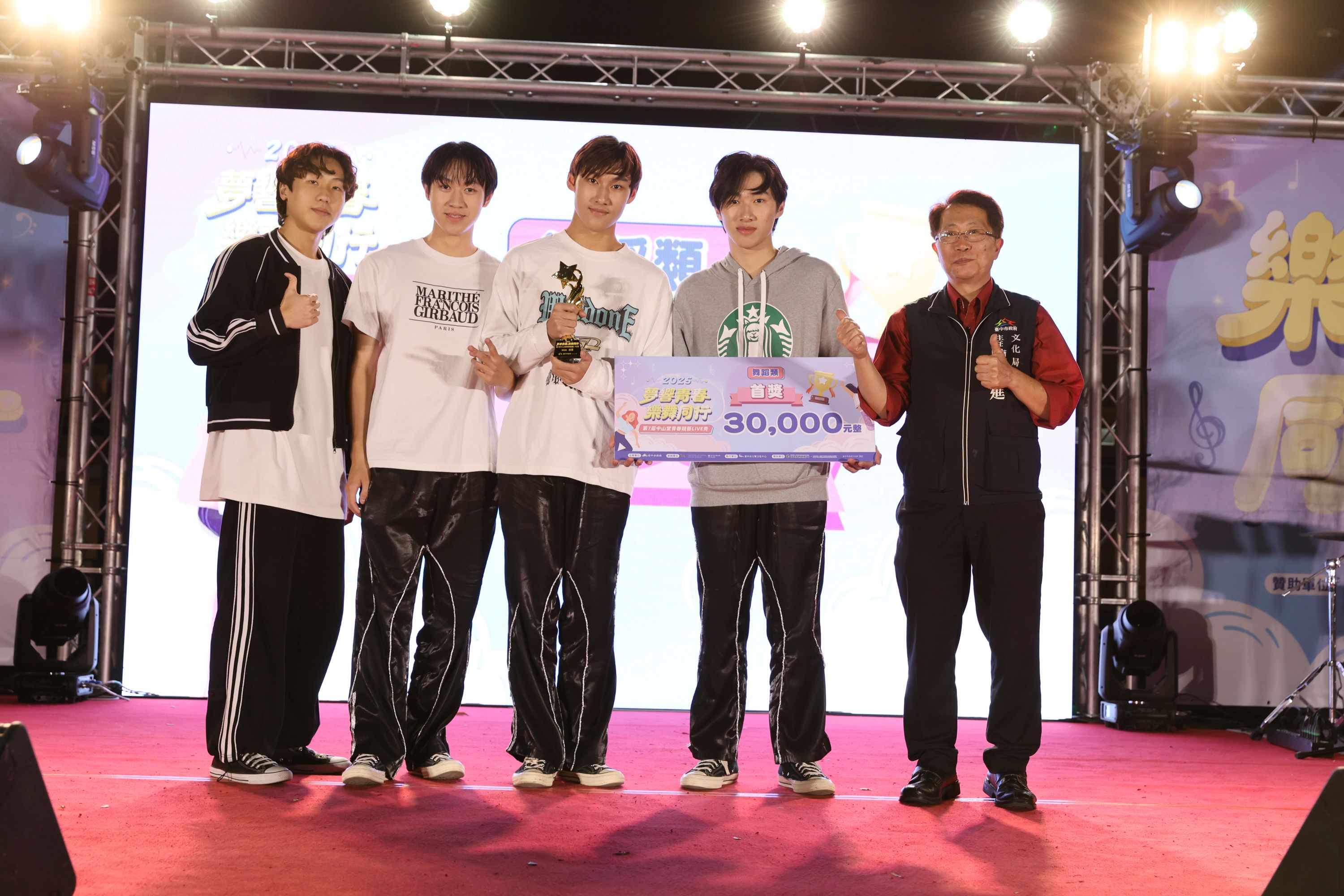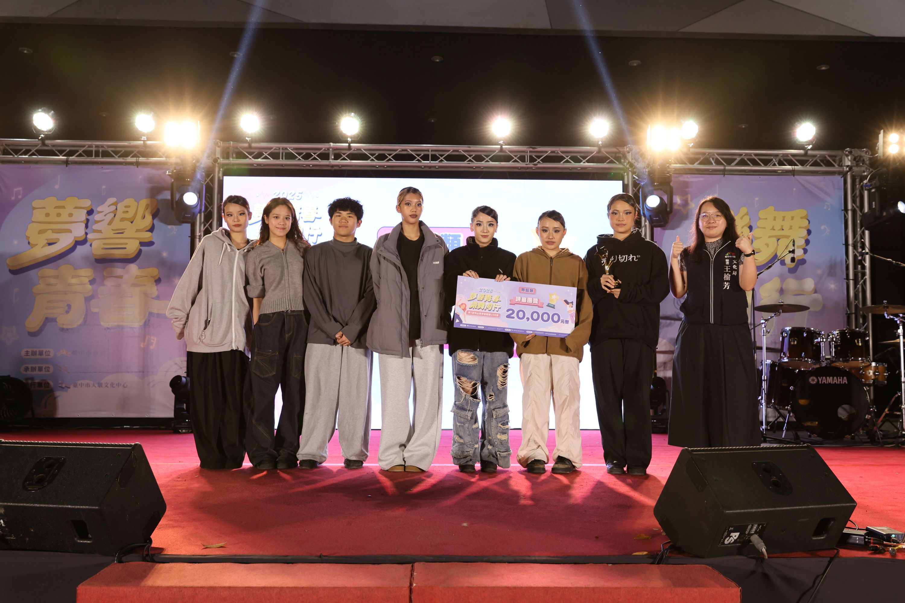 大墩文化中心指出,今年決賽競爭格外激烈,各組隊伍皆展現高度完成度與亮眼特色,不論在舞台魅力、造型風格、服裝呈現到整體舞台氛圍營造,都展現出亮眼的統一性與藝術性,充分體現青年世代的創意火花與無限可能。經專業評審團審慎評選後,舞蹈類首獎由多校組合「萌世代」奪下,評審團獎由多校組合「Shudaboll」脫穎而出;最佳創意獎、最佳造型獎及最佳人氣獎則分別由樹德家商「樹德女力」、多校組合「水煮蛋1.5」、多校組合「萌世代」抱回獎項。此外,音樂類首獎由臺北城市科技大學「SNAKE樂團」摘下,評審團獎為僑光科技大學「ZX」;最佳創意獎、最佳造型獎及最佳人氣獎分別由臺北城市科技大學「初芽」、樹德科技大學「黃宇彰」、僑光科技大學「ZX」獲得。