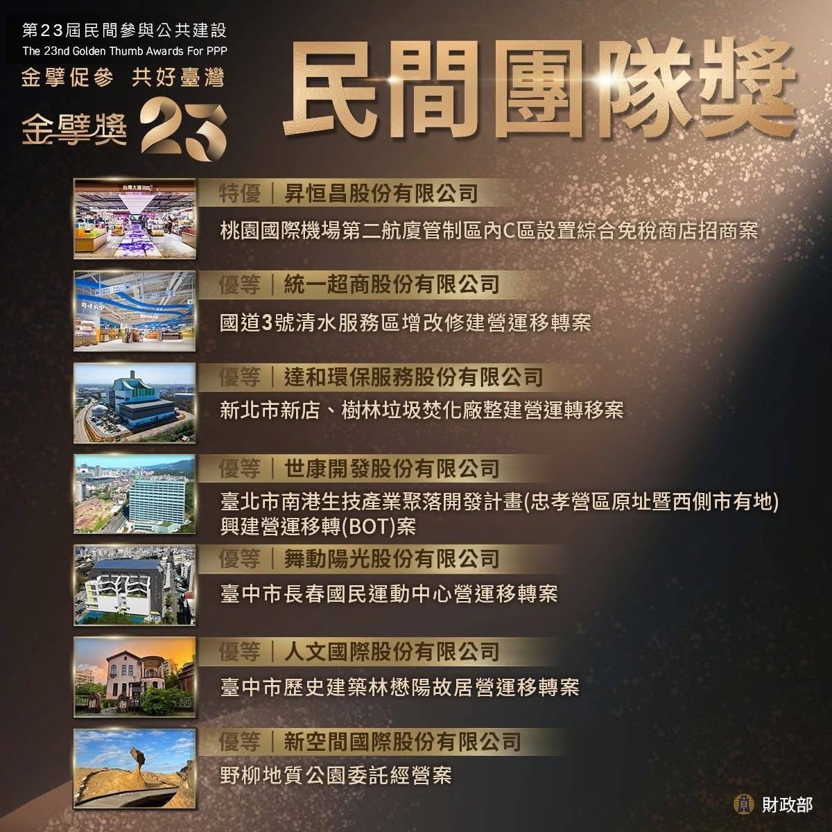 「臺中市歷史建築林懋陽故居營運移轉案(OT)」獲國家級肯定!本案於財政部辦理之「第 23 屆民間參與公共建設金擘獎」中脫穎而出,經初評入選與複評,最終榮獲「民間團隊優等獎」。頒獎典禮於 114 年 11 月 28 日下午 2 時假台北國際會議中心舉行,由本案民間營運團隊人文國際股份有限公司到場代表受獎。