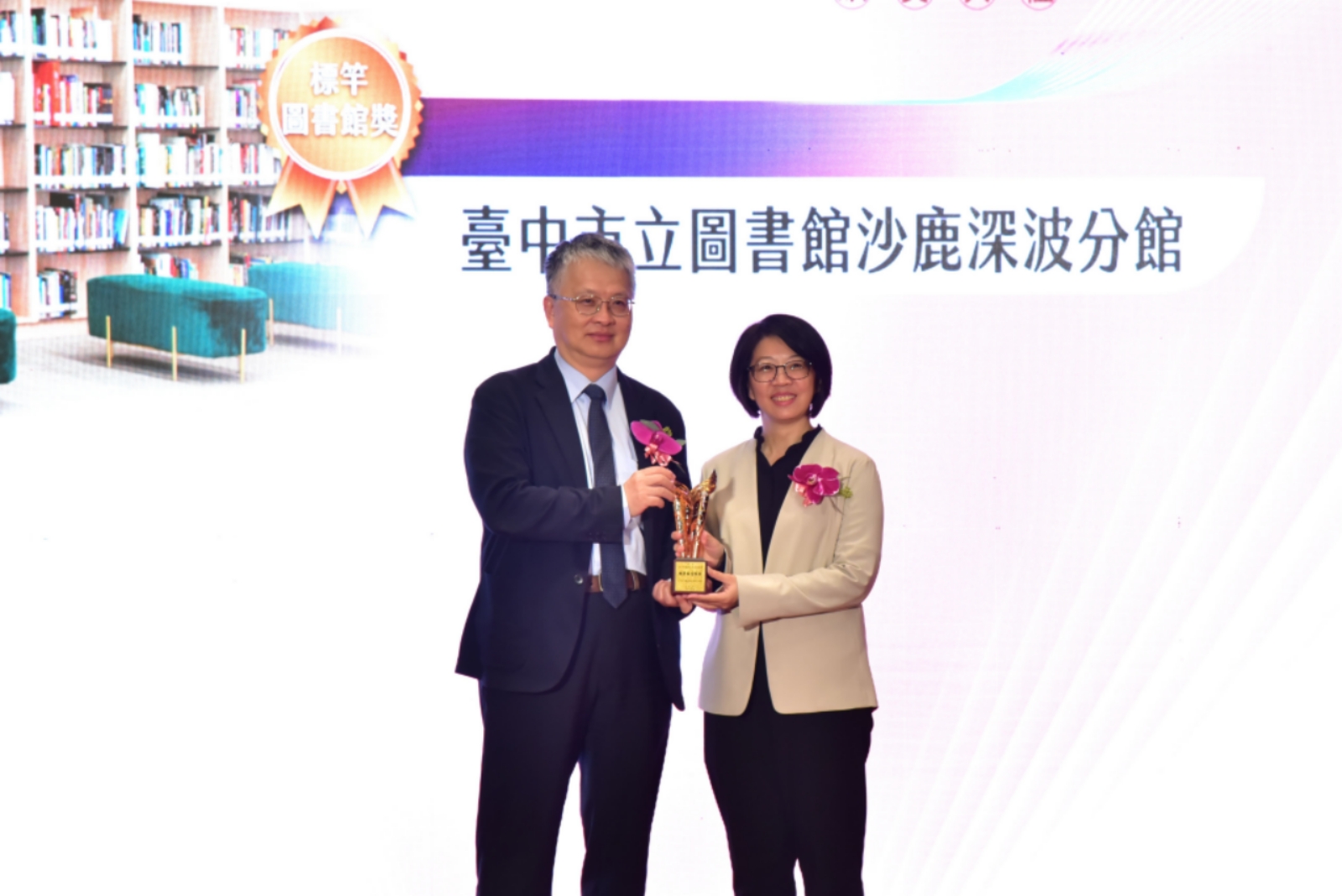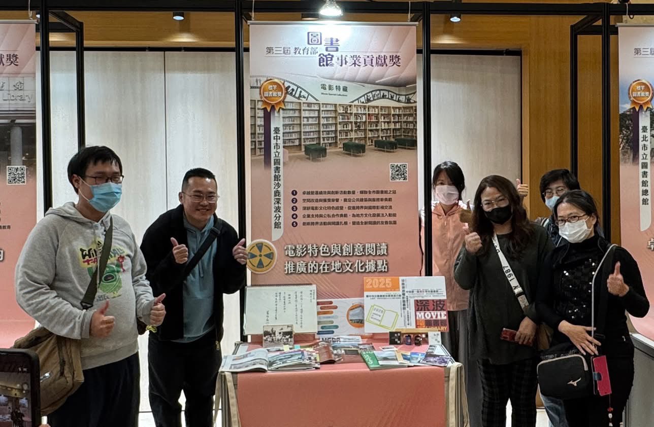 台中市立圖書館沙鹿深波分館憑藉獨具特色的電影館藏、跨界閱讀活動與深耕社區的創新服務,榮獲有「圖書館界奧斯卡」之稱的教育部第三屆「圖書館事業貢獻獎—標竿圖書館獎」。頒獎典禮昨(17)日在國家圖書館舉行,由館長曾惠君代表受獎,為深波分館的努力與亮眼成果寫下里程碑。