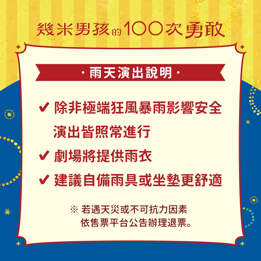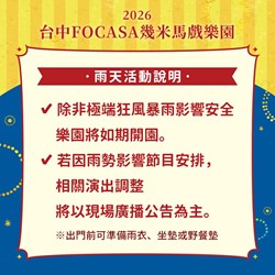 ✦若因雨勢影響節目安排,相關演出調整將以現場廣播公告為主。