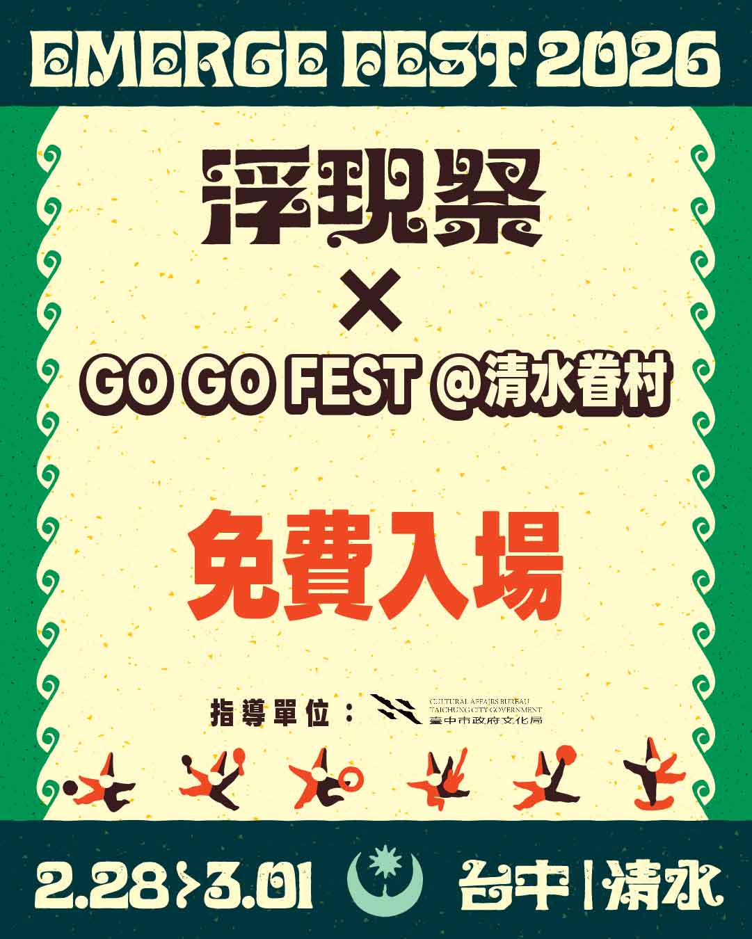 本活動延續台中長期累積的搖滾音樂能量,與中部年度指標性音樂祭「浮現祭」形成前後串聯效應,於清水眷村文化園區舉辦「GO GO FEST」免費音樂活動,提供樂迷多元且可親近的音樂體驗。透過不同型態音樂活動的相互加乘,進一步擴大台中音樂城市的能見度與參與度。以年輕創作者與學生族群為核心,建構具台中在地氛圍的音樂展演平台,結合清水地區既有藝文資源與地方活動,促成音樂演出、社區參與與親子共遊的交流場域。藉此展現台中音樂文化的多樣樣貌,同時培育青年音樂人才,推動在地藝文生態的共同成長。