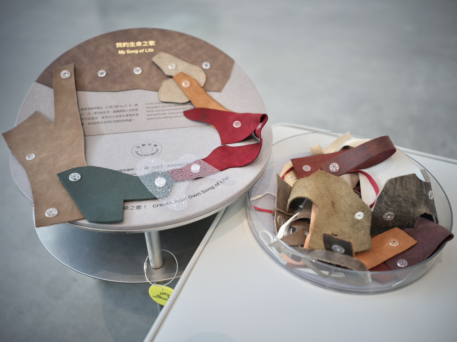 此外,中美館的「角落任務 Play Space Plug-in」教育推廣計畫,將互動體驗融入館內各個角落,邀請觀眾透過小任務親近藝術。每個角落任務都有一個可愛的名稱,「角角」是讓觀眾創造不同風景、「框框」可以用蠟筆感受建築外牆金屬擴張網的紋理、「變變」讓民眾觸摸藝術家陳幸婉〈大地之歌 No.1〉的複合媒材布料、「跟跟」則透過材質板引導觀眾感受人間國寶王清霜〈佇聆孔雀〉中的漆藝技法,以及設置於圖書館兒童閱覽區二樓的「亮亮」,則引導大小朋友在陽光穿越擴張網與大片窗戶灑落的光影中,拼組屬於自己的綠美圖探索故事。