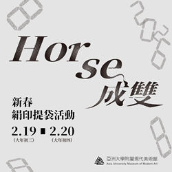 吃飽喝足後,「走春」自然也是必要選項,除了幫助消化,更能往外迎春納福。霧峰林家宮保第園區大年初二熱鬧辦理跳加官活動,讓參觀者逛古蹟、接福氣;緊接著亞洲大學附屬美術館在大年初三、初四辦理「Horse成雙-新春手作體驗活動」,以最新展覽「眾生共命:宮島達男」特展為靈感發想,邀請大家挑選專屬幸運號碼,絹印出獨一無二的提袋。