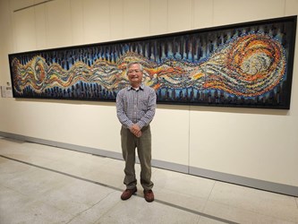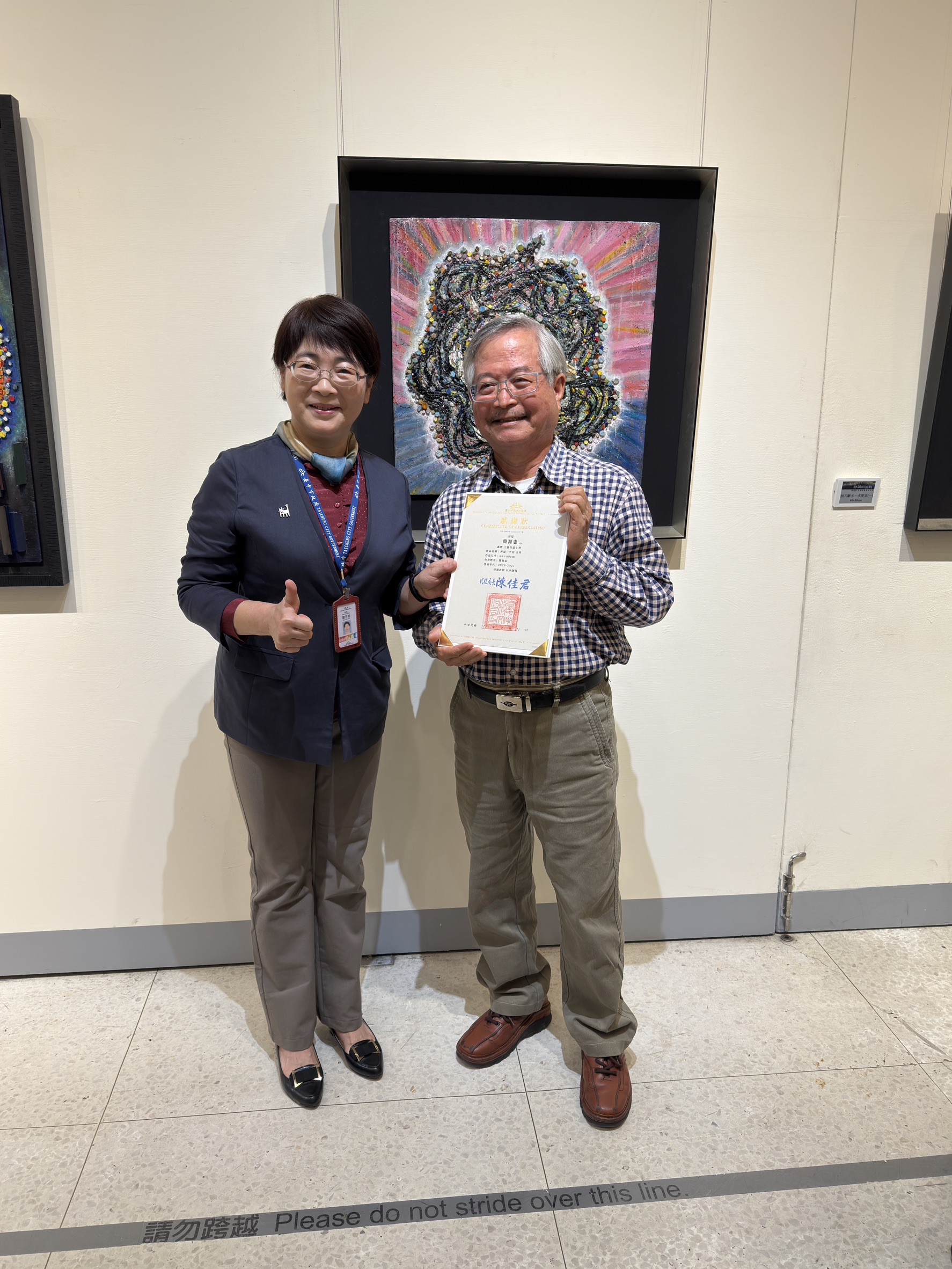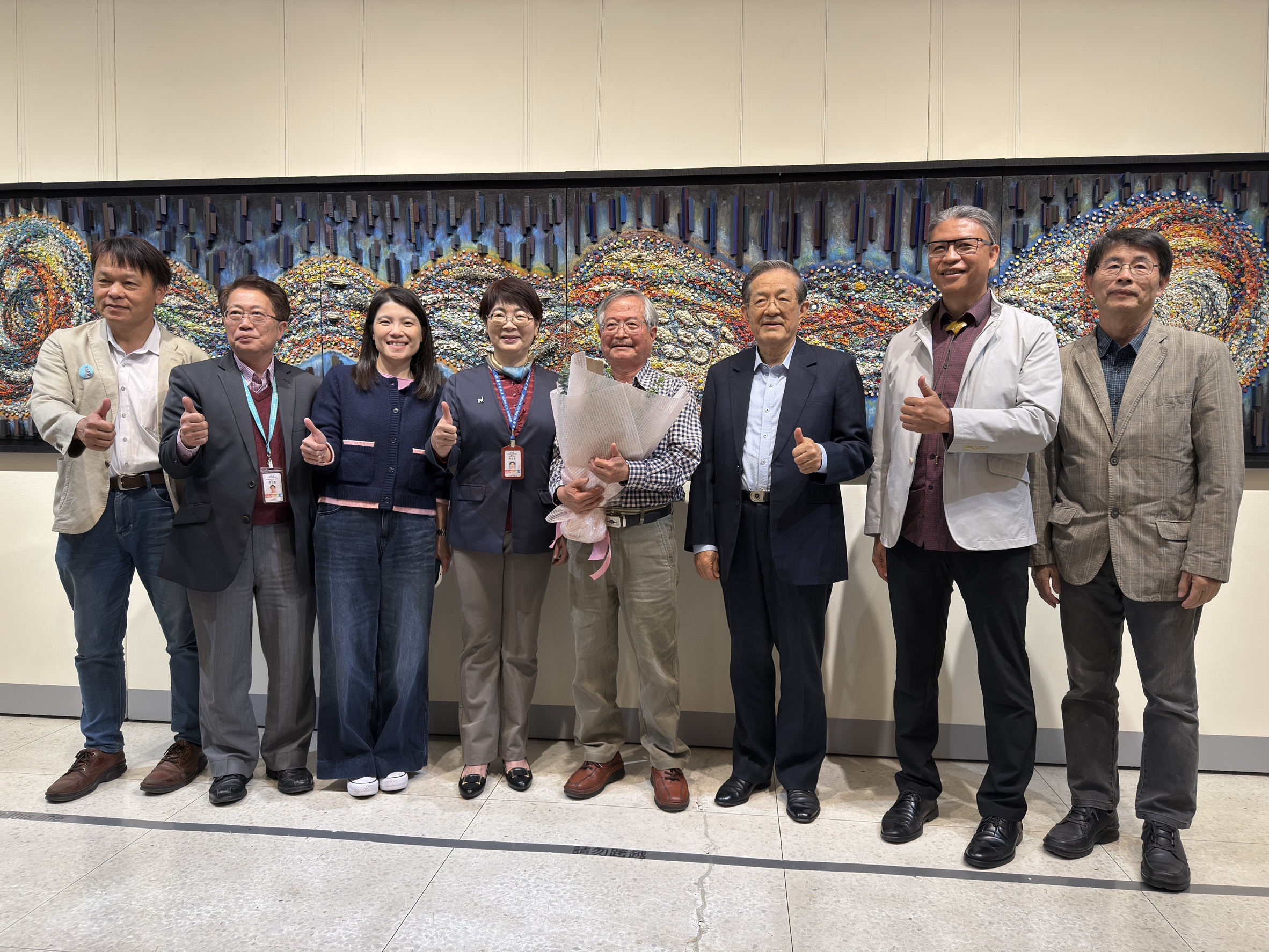 文化局表示,藝術是時間淬鍊下的結晶,記錄了創作者的生命軌跡,也映照出不同時代所留下的文化紋理。簡源忠教授自1970年代起深耕鑲嵌領域,曾遠赴歐洲研習古典鑲嵌技法,在嚴謹而紮實的工藝訓練中,建立起對材質、結構與節奏的高度敏感度,並在古老技藝的基礎上,發展出屬於當代的視覺語彙。其藝術成就於110年獲頒「臺中市資深優秀美術家」肯定,並多次擔任大墩美展與大墩工藝師評審,為國內公共藝術的重要審查委員,更長期致力於傳承臺灣馬賽克先驅顏水龍先生的精神,是國內當代鑲嵌藝術的重要推手。