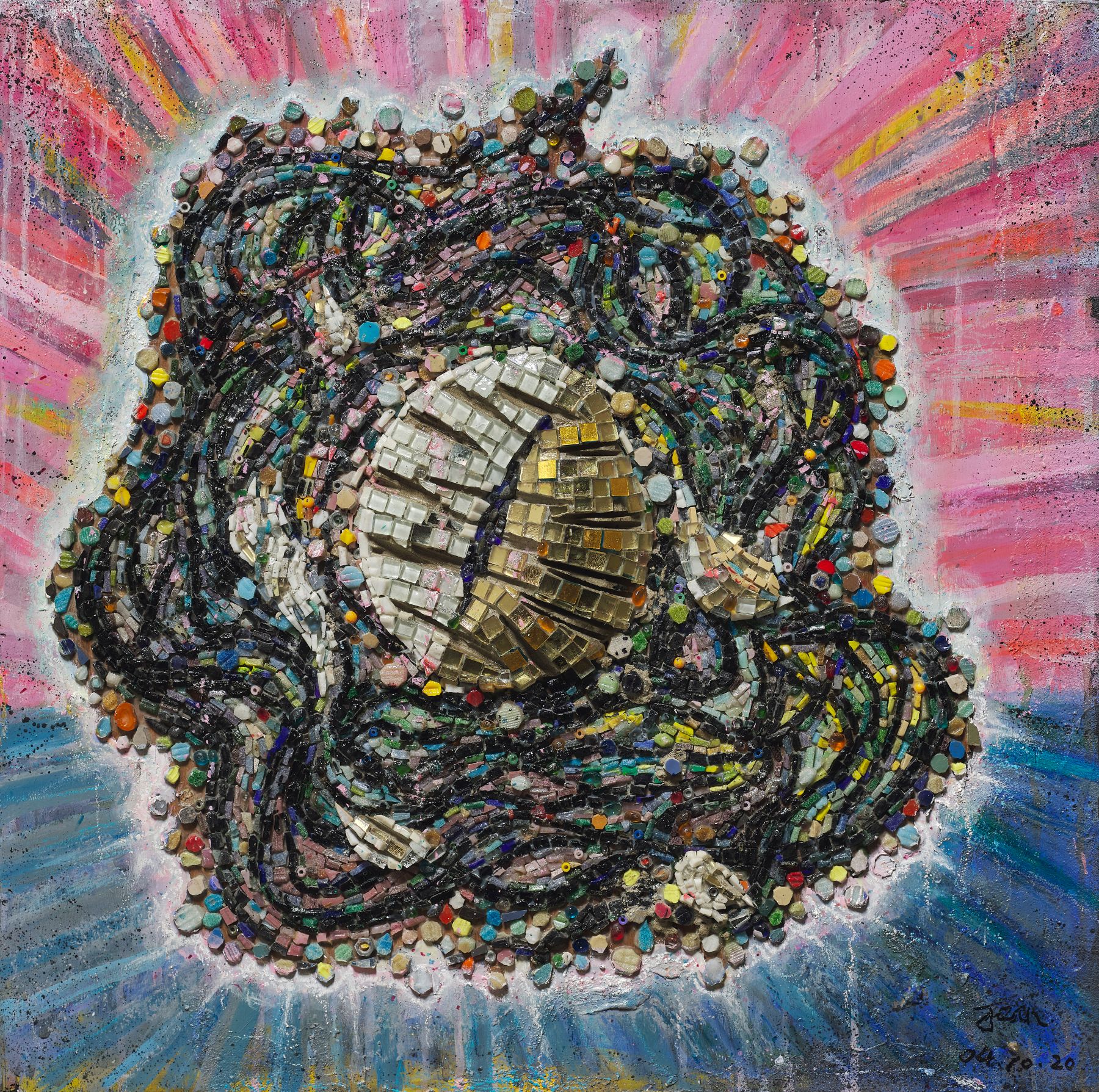 簡教授將其視為臺中市的「母親之河」,自2022年底起開始構思、草圖、蒐集創作材料,歷時3年半的孕育,作品中每一片彩色玻璃、琺瑯、琉璃、鏡片、陶瓷、大理石、石英、金屬、貝殼及其他多種媒材,都是簡教授耗時1年多在工作室敲敲打打,歷經200多萬次的鑲嵌組構,終於在展前1個月完成長達550公分,極具重量的代表作〈母親之河—麻園頭溪〉,畫面中層層交錯的光影與流動節奏,既沉穩又富於變化,令人不自覺地駐足凝視。更多展覽詳情可至大墩文化中心官網(www.dadun.culture.taichung.gov.tw)查詢。